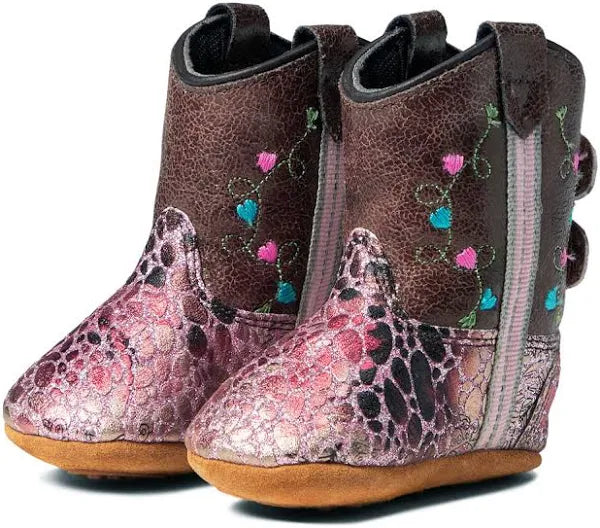 Old West Infant Faux Leather Pink & Brown Poppet Western Boots