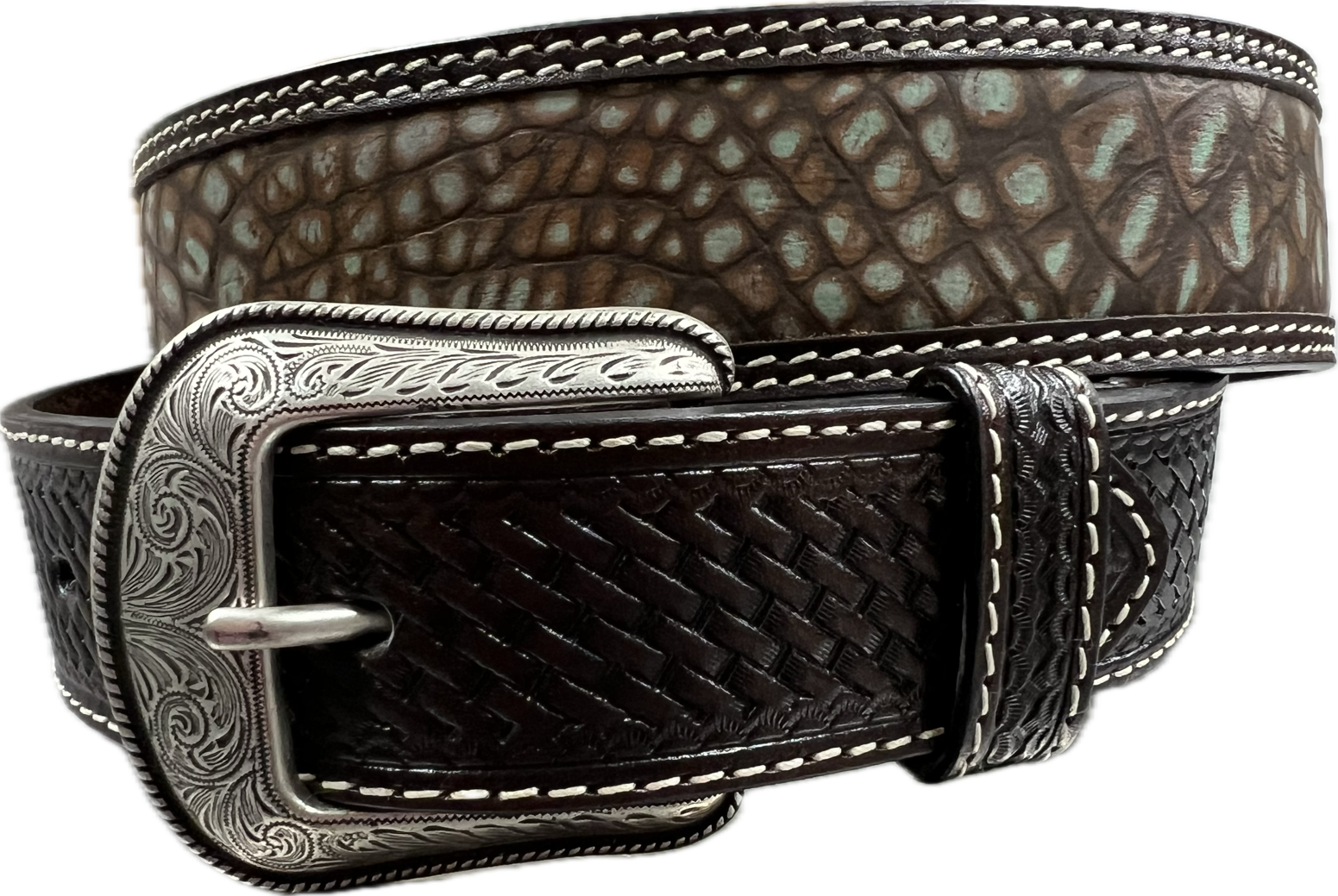3D Belt Co. Men's Chocolate Brown Belt w/Turquoise Gator Print