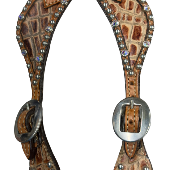 Alamo Saddlery Ladies Spur Straps Tan Gator Print with Crystals & Silver Studs