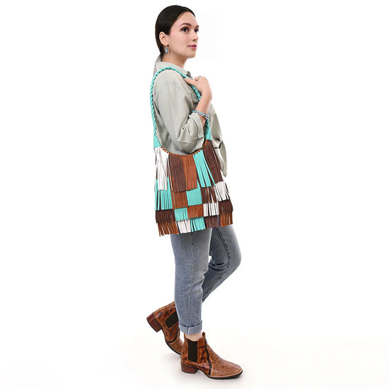 American Darling Multi Colored Fringe Leather Hobo Purse