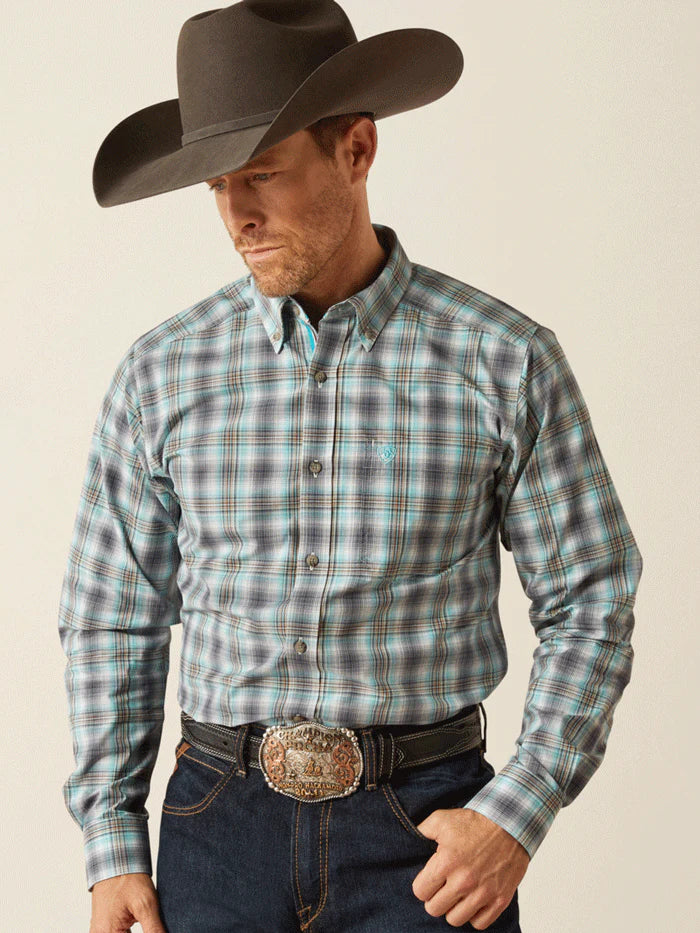 Ariat Men's Teal Plaid Pro Series Piers Fitted Shirt