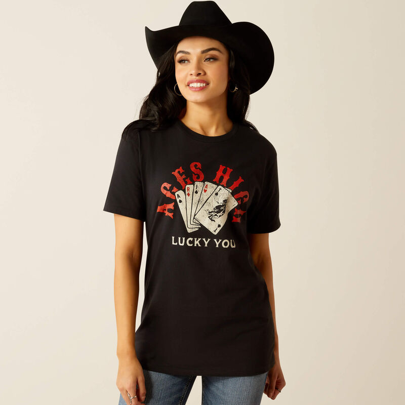 Casual look. Everyday Ariat style. With a little extra room to move through the shoulders, this soft jersey tee keeps you comfy wherever you go.