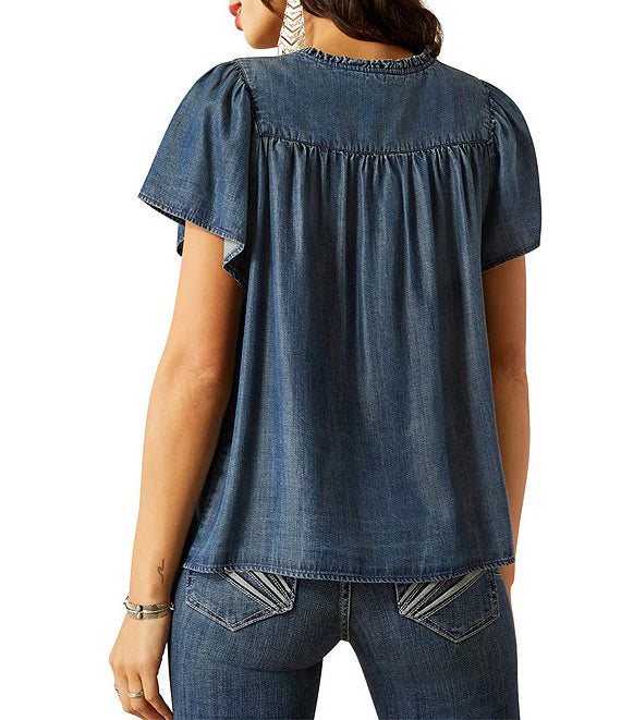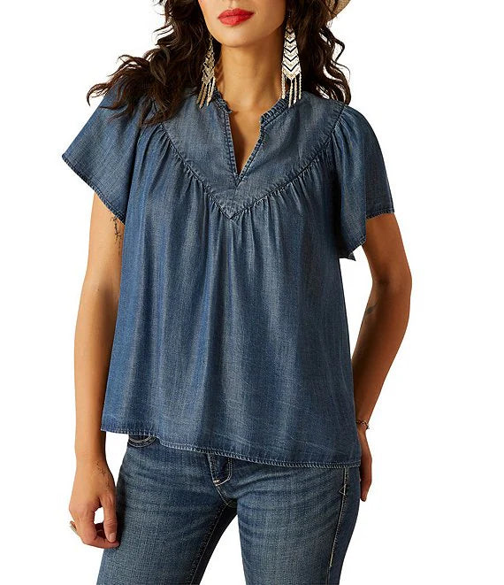 Ariat Women's Emma Short Sleeve Medium Denim Blue Top