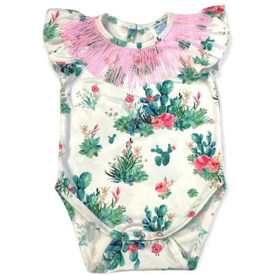 Shea Baby - Baby/Toddler Girls Cactus w/Pink Fringe Top-Onsie & Shirt