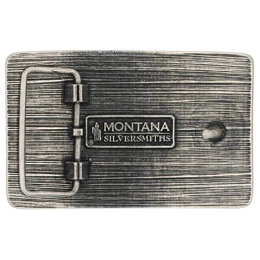 The National FFA Organization prepares future leaders through agricultural education. Montana Silversmiths Be the Future Attitude Buckle celebrates this organization by displaying their logo prominently in the center in both gold and silver tones. Gold finished wheat stands on either side of the logo and "Be The Future" is written in a matching color. A distressed American flag in bright silver finish is added to the background overlaying a gunmetal finish. The buckle is design is concluded with a smooth gold tone border. Show your support for the FFA with this beautiful Attitude buckle. Standard 1.5 inch belt swivel.