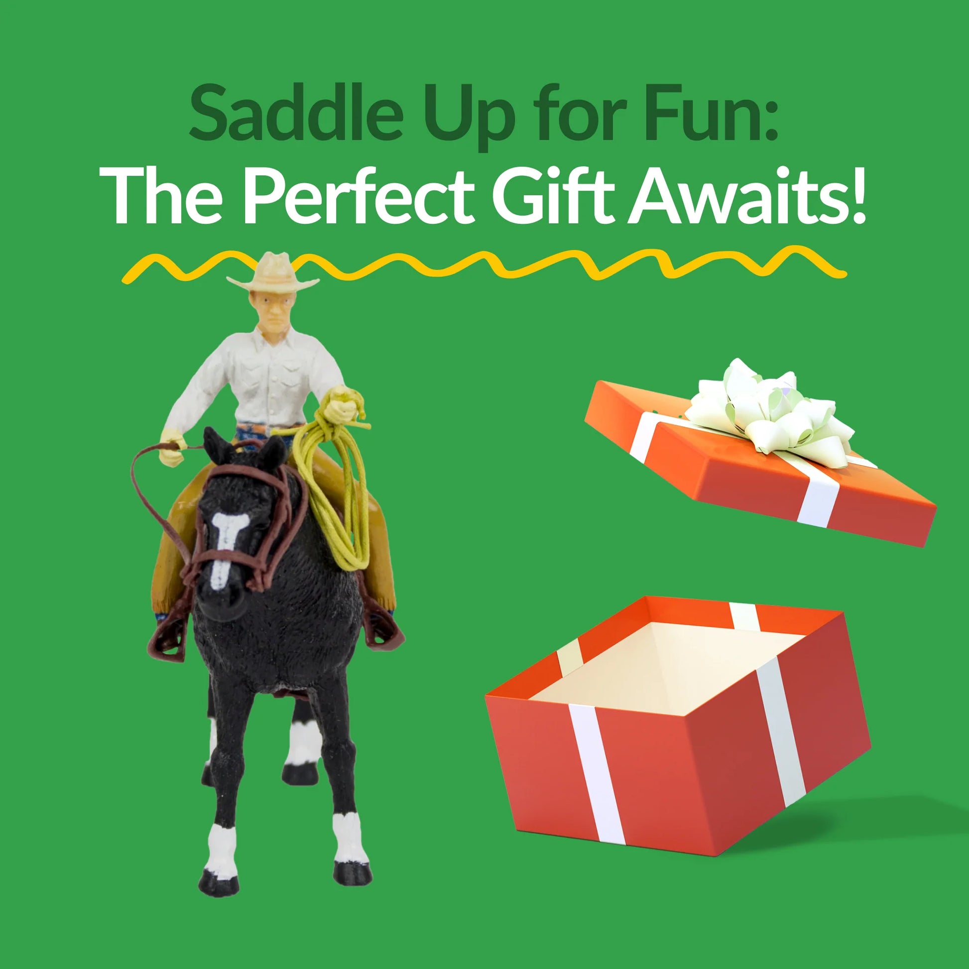 AUTHENTIC FUN: Kids can now replicate authentic ranch play right inside their home. Inside, you'll find a cowboy and Quarter horse with saddle and tack.
