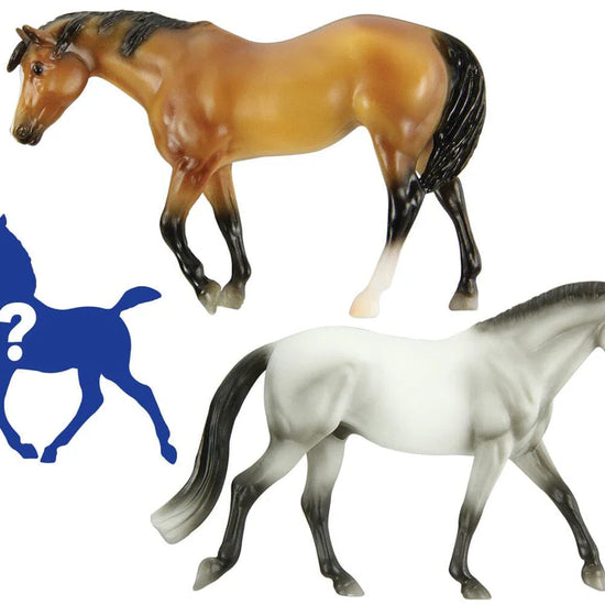 Hidden within each new Horse Foal Surprise is a new foal waiting to be discovered. The Elegant Pastures Family comes complete with a mare, a stallion, and a foal, of course! This family includes a buckskin Mustang mare and a grey Irish Draught stallion. You'll meet the new foal when you open your package!