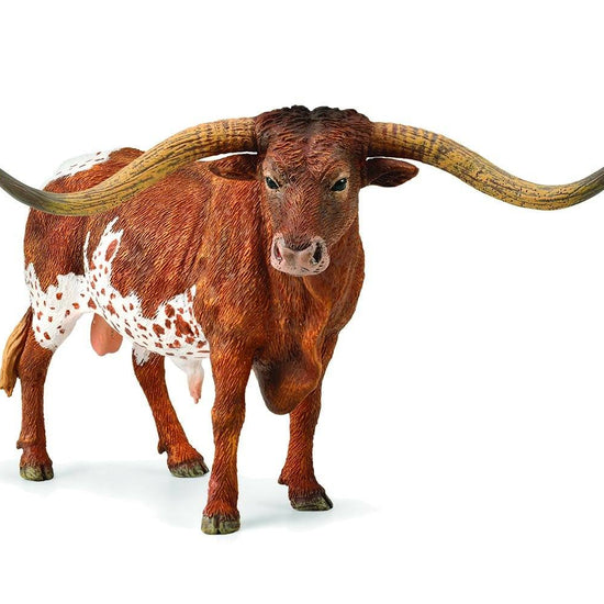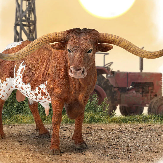 The Texas Longhorn is a breed of cattle known for its characteristic horns, which can extend to over 100 inches tip to tip for cows and bulls. They are descendants of the first cattle introduced in the New World and are known for their innate gentle disposition and intelligence.