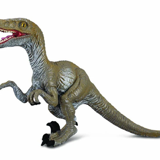 The velociraptor is a carnivorous dinosaur from the Upper Cretaceous period. It's name is said to mean fast hunter. Velociraptor had long hands with eagle-like talons and each foot was equipped with a curved killing claw, which it used for puncturing its victims’ throats.