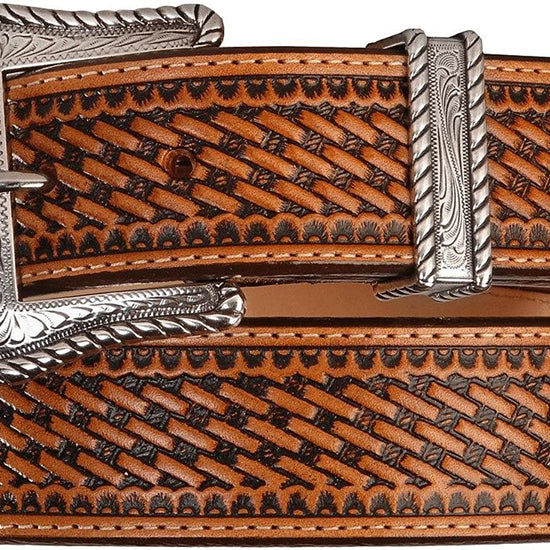 Justin Men's Bronco Basketweave Tan Leather Belt