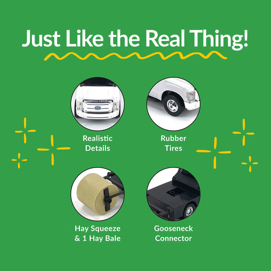GOOSENECK AND BUMPER TRAILER CONNECTORS: This truck has a gooseneck trailer hitch that will fit any of our Big Country Toys trailers for maximum mix-and-matching capabilities! Our trucks also feature working tailgates and rubber side mirrors to prevent them from breaking.