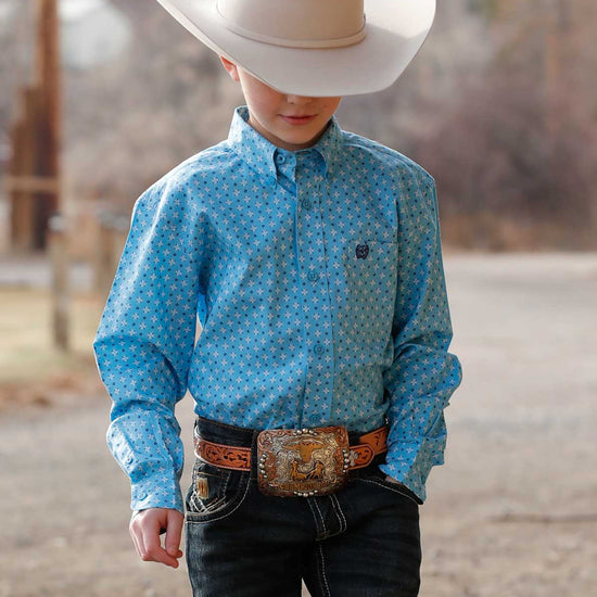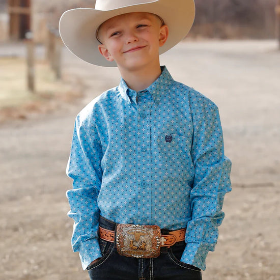 Cinch Boy's Light Blue Print Button-Down Western Shirt