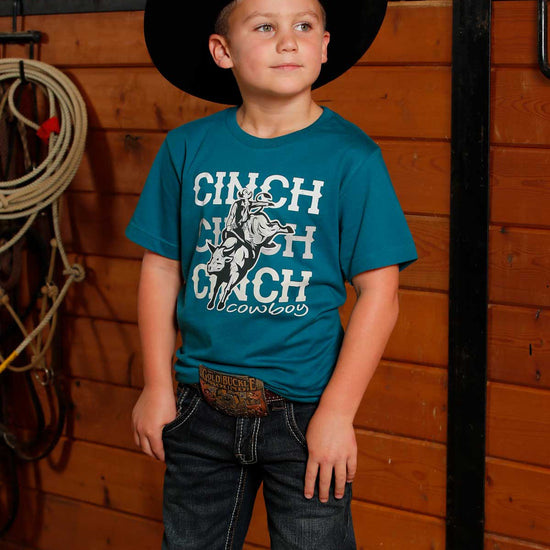 Cinch Boy's Teal Graphic Bull Rider Cinch Cowboy T-Shirt