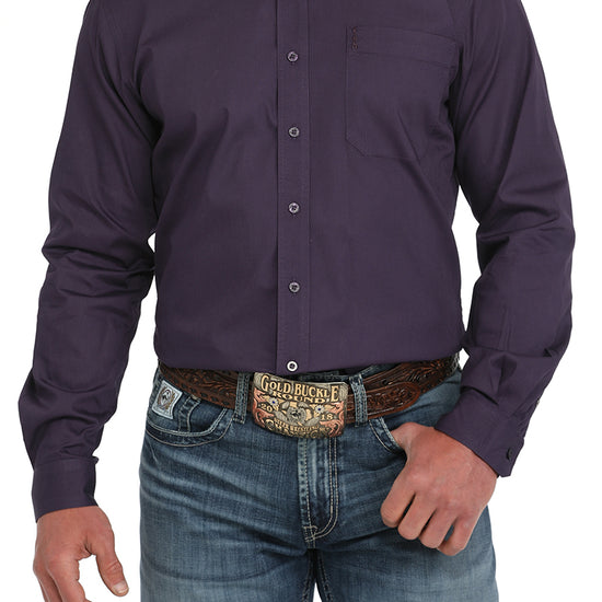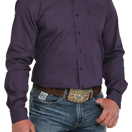 Cinch Men's Solid Purple Modern Fit Button-Down Western Shirt
