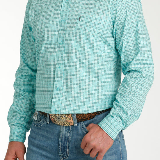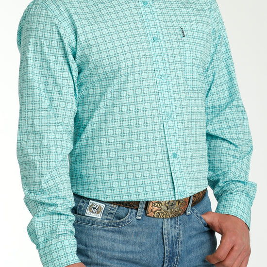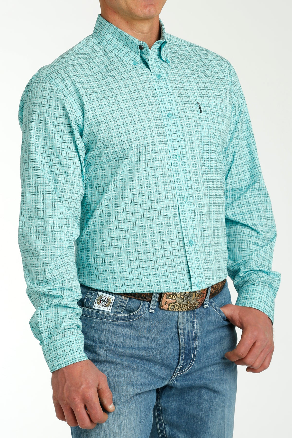 Experience modern style with Cinch's Men's Modern Fit Blue Square Geometric Print Button Down Shirt. This long sleeve shirt features a sleek modern fit and classic button-down design, accented by stylish blue buttons. Made of comfortable and durable cotton plain weave, this is the perfect shirt for any occasion.