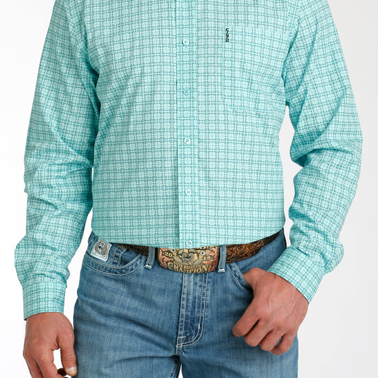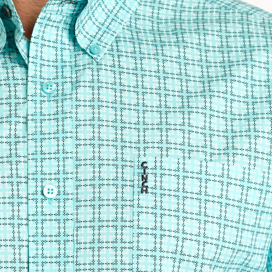 Cinch Men's Modern Fit Blue Square Geometric Print Button Down Shirt