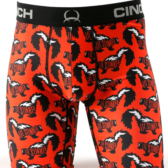 Whether you're heading to the gym or a casual night out, the Cinch Men's 9" Stinker Boxer Brief keeps you comfortable with lightweight moisture-wicking fabric, four-way stretch, and anti-microbial treatment. It also features a tagless design and soft logo waistband for added comfort and a unique skunk print for a subtle statement.