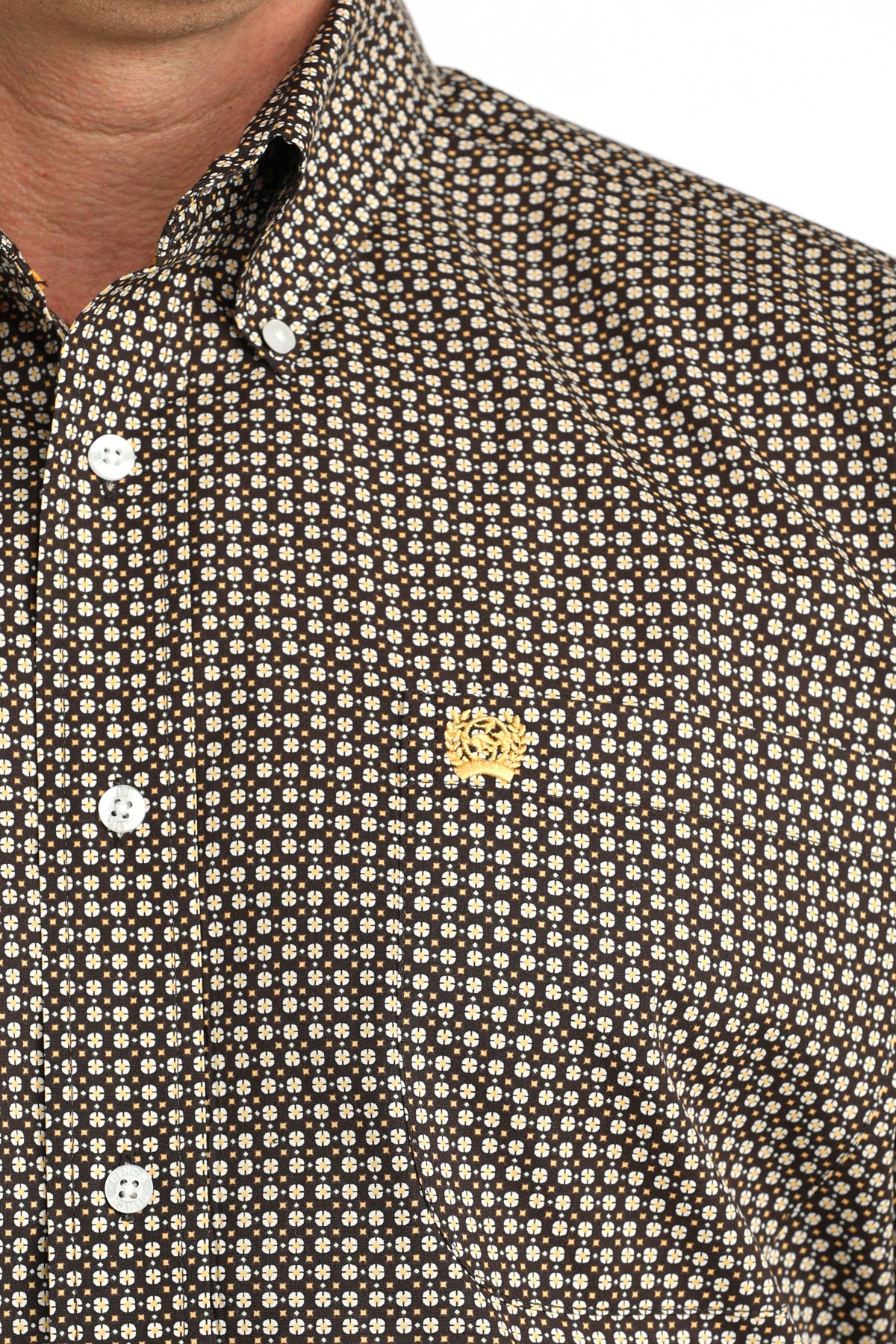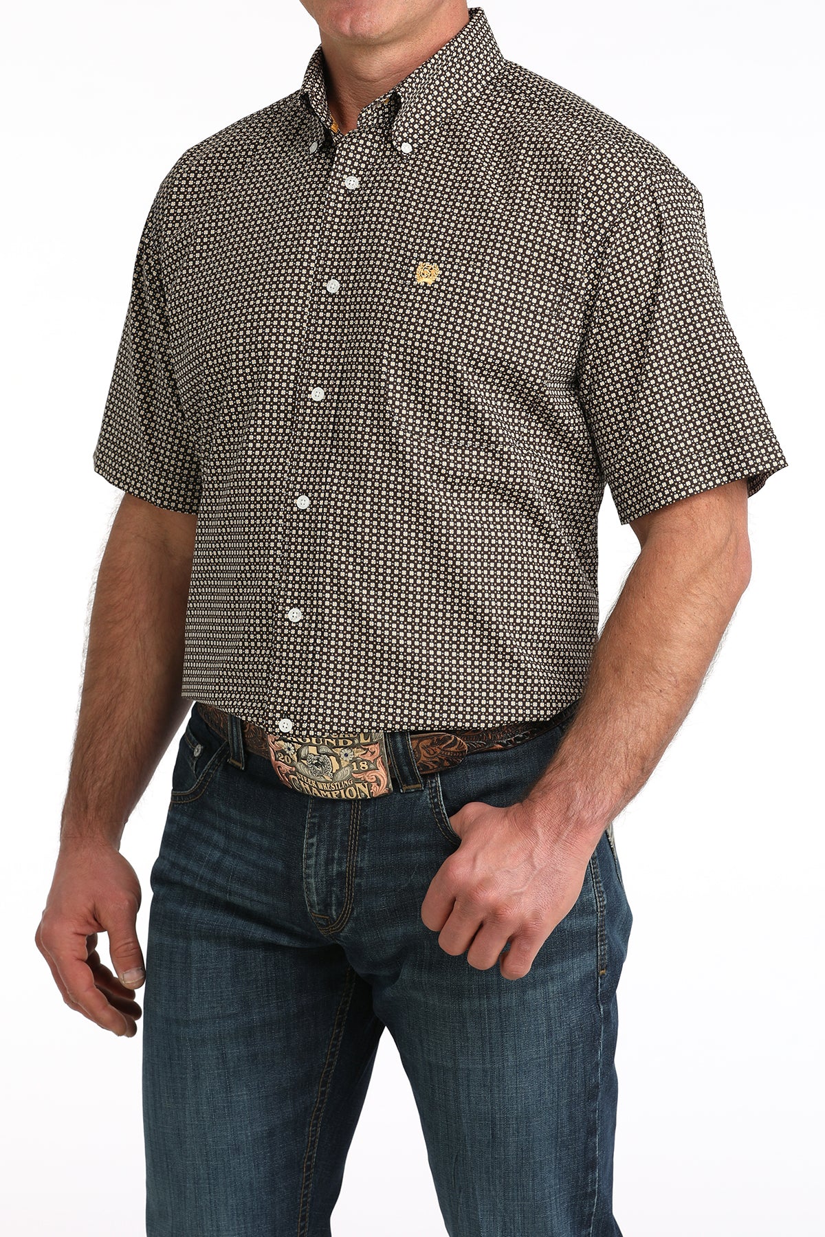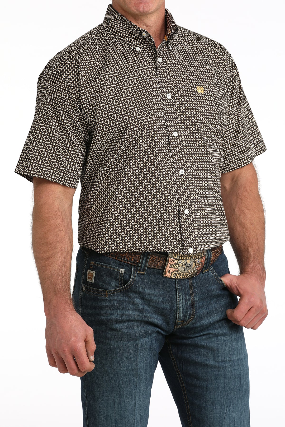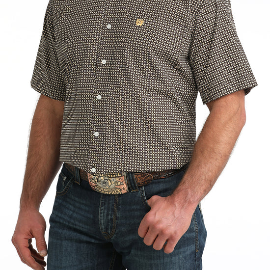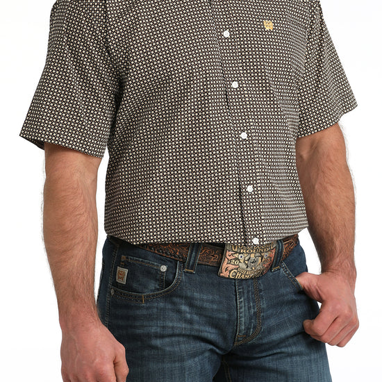 Cinch Men's Brown Geometric Print Short Sleeve Classic Fit Shirt