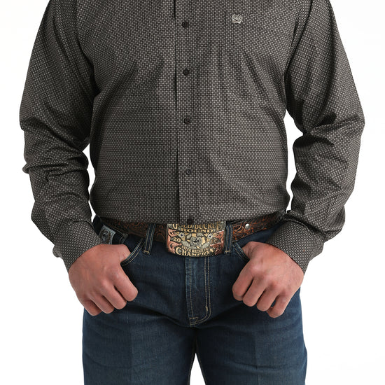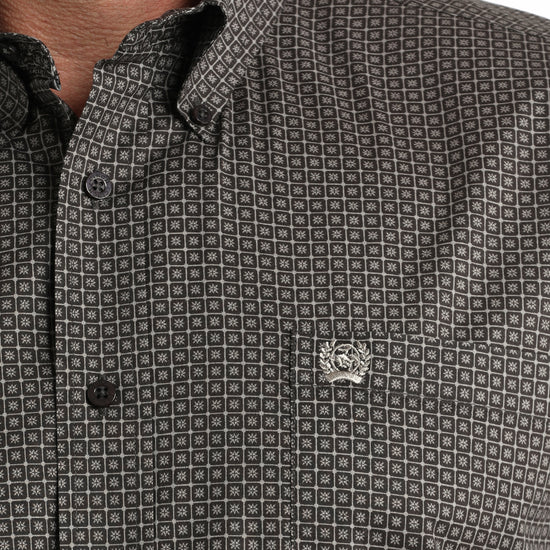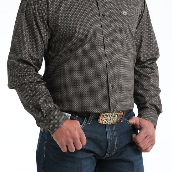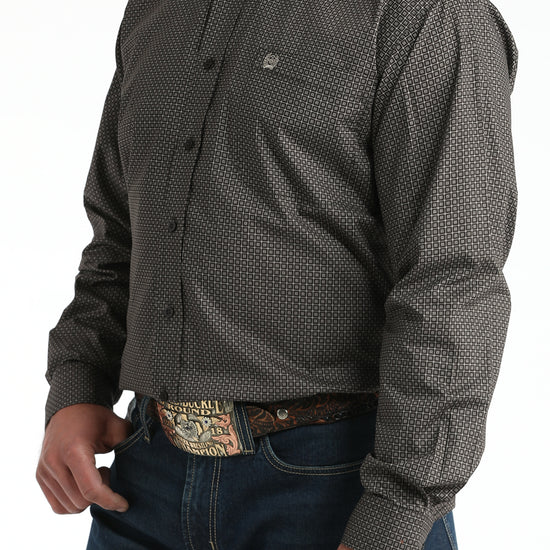 Cinch Men's Brown Square Print Long Sleeve Button Down Shirt