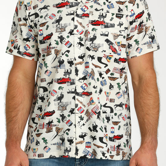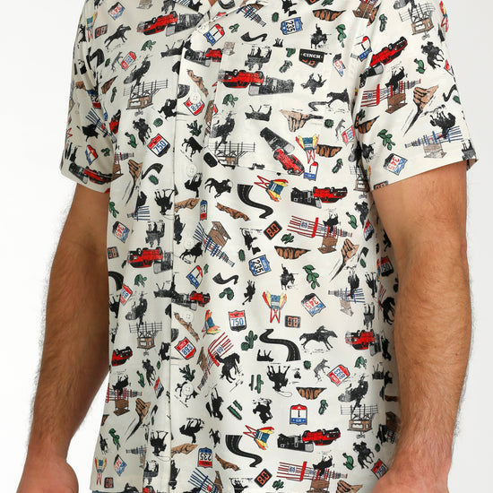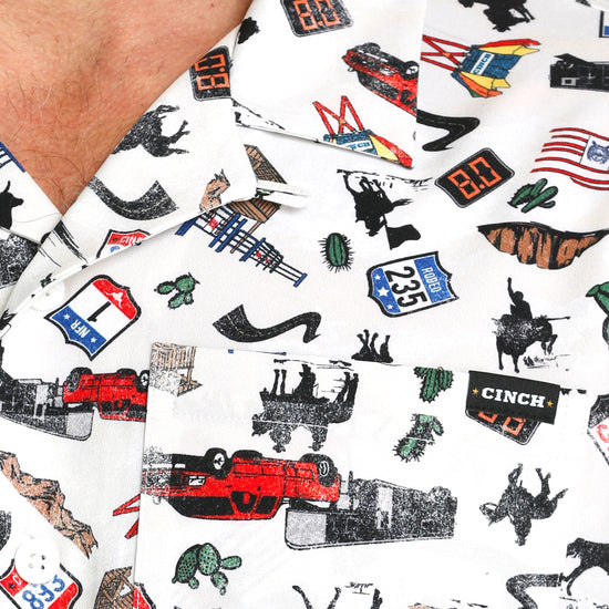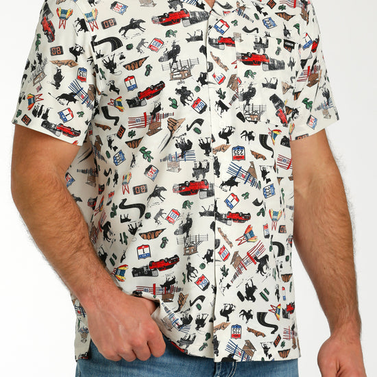 Cinch Men's White Rodeo Print Camp Shirt