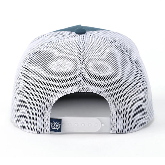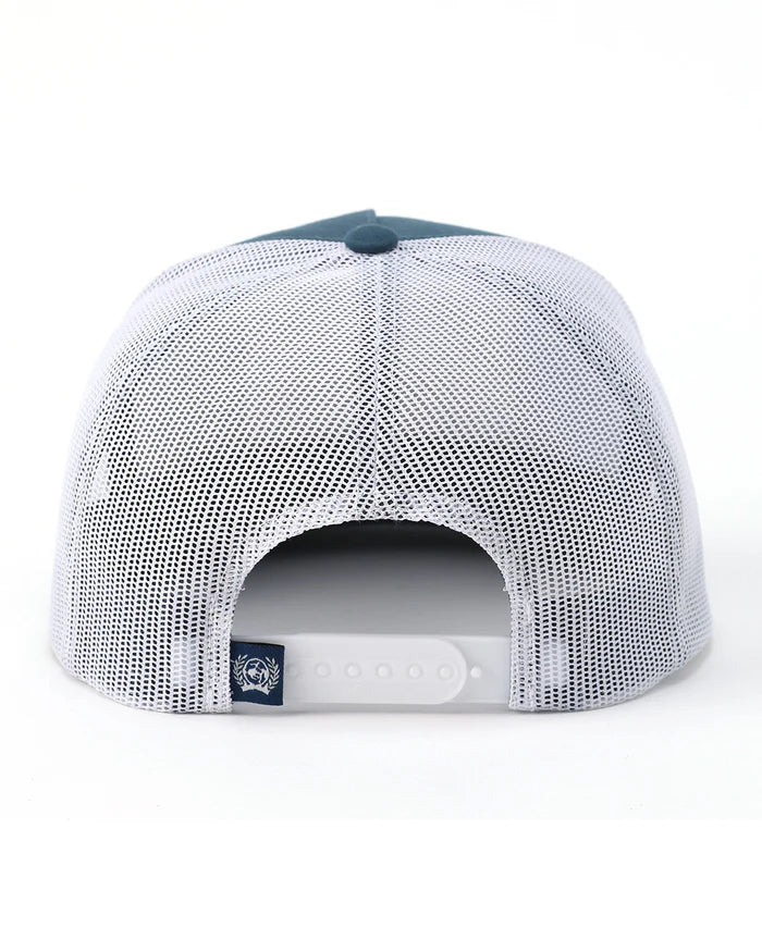 Elevate your casual style with the Cinch Men's High Profile Teal Trucker Cap. Featuring a bold 5-panel construction and vibrant teal front, this cap is completed with breathable white mesh for comfort. The woven Cinch Jean Company logo patch adds authentic detail, while the secure back snap closure ensures a perfect fit all day long. Perfect for those who demand both style and functionality.