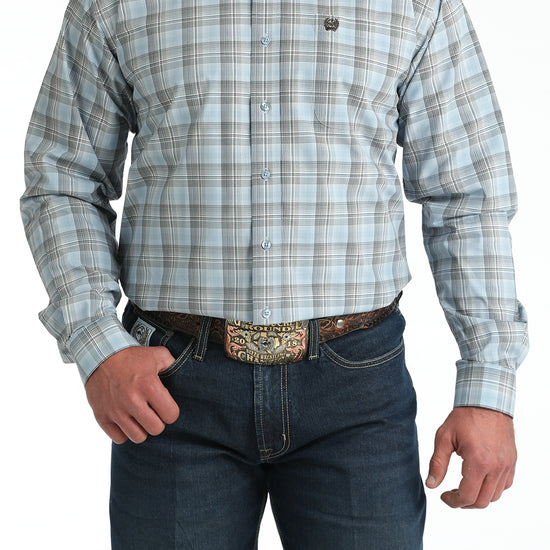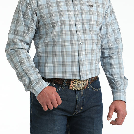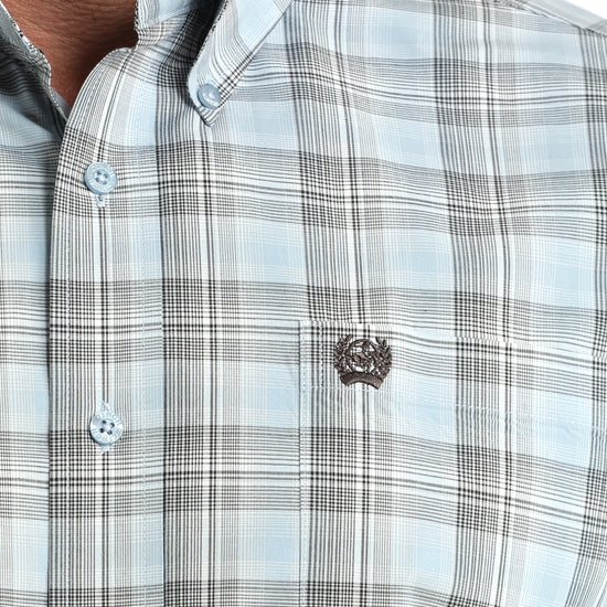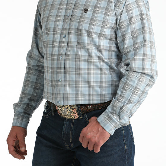 Cinch Men's Light Blue Plaid Button-Down Long Sleeve Shirt
