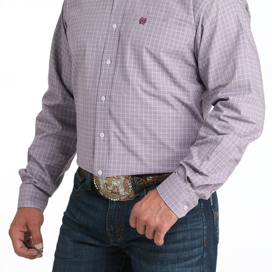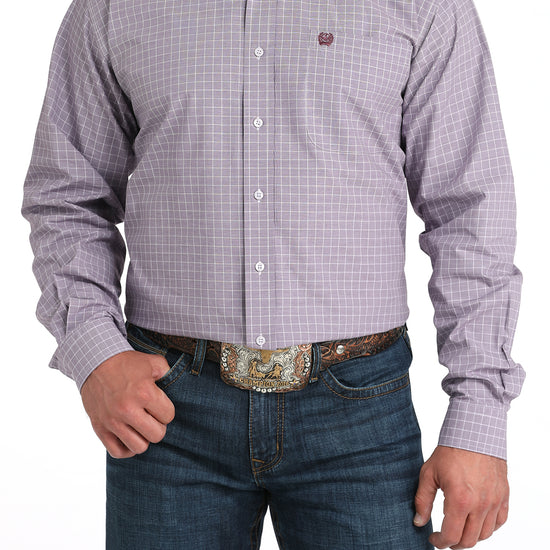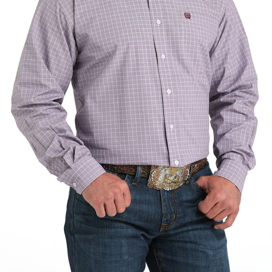 Cinch Men's Light Purple and White Box Plaid Button-Down Shirt