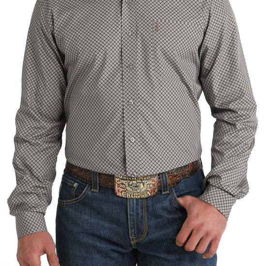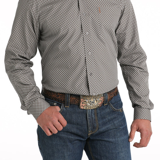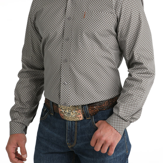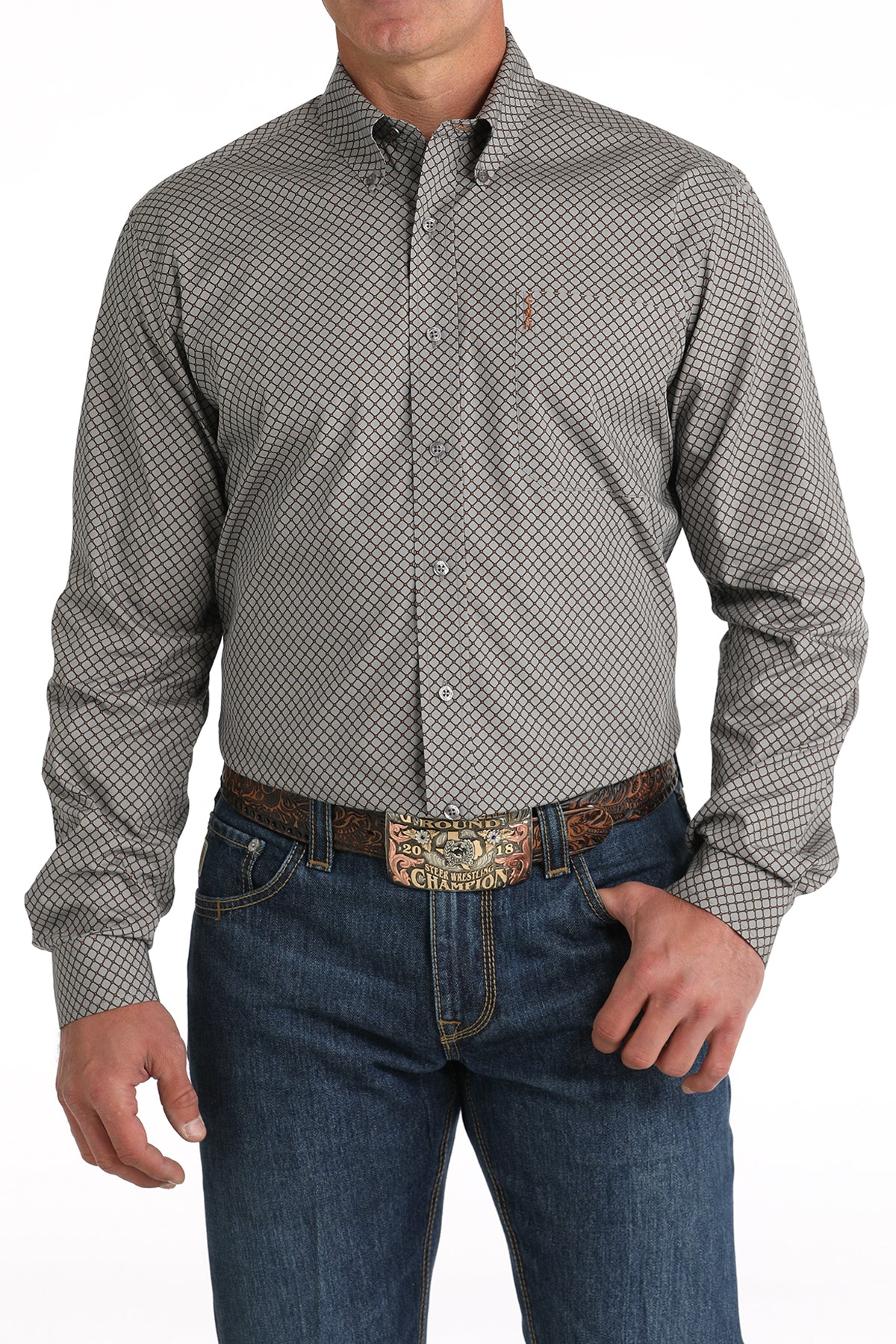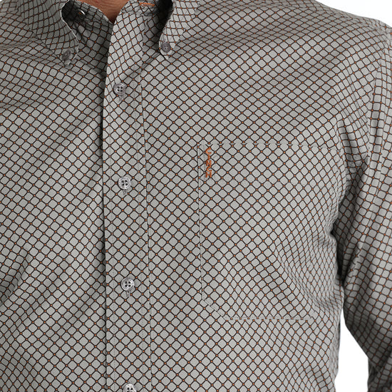 Cinch Men's Modern Fit Grey Printed Button Down Long Sleeve Shirt
