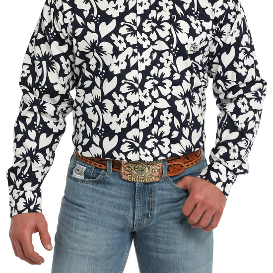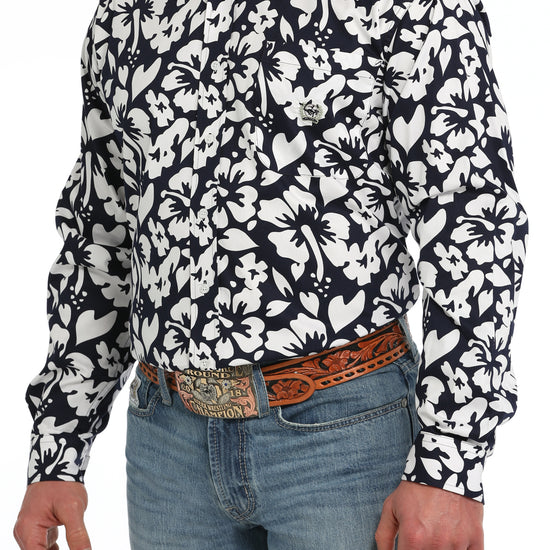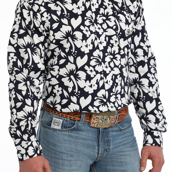 Cinch Men's Navy Hibiscus Print Button-Down Western Shirt