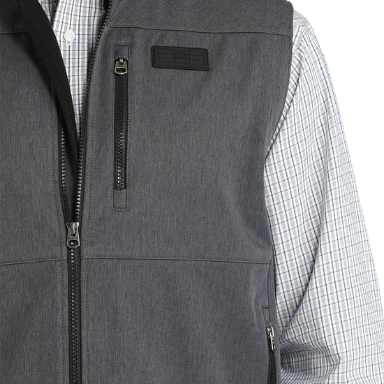 Add the perfect combination of core warmth and style to your outerwear lineup with our new-for fall navy waffle back softshell vest. Constructed in comfortable poly-spandex that keeps you on the move, this vest easily layers over a Henley or button down. Design details include handy exterior pockets, a 3D rubber logo patch and Durable Water Resistant (DWR) finish.
