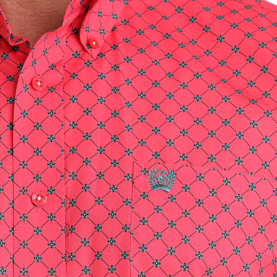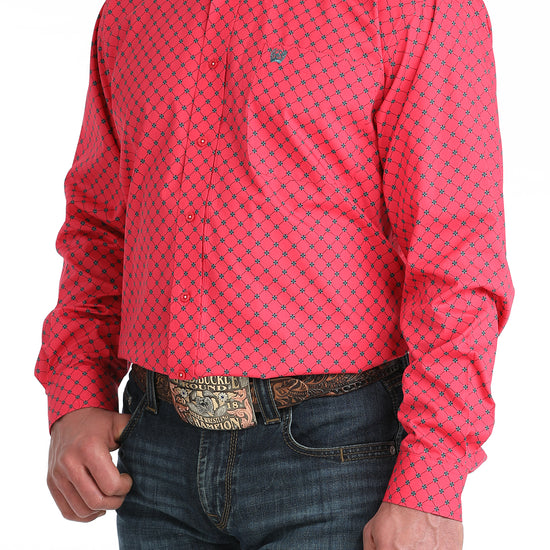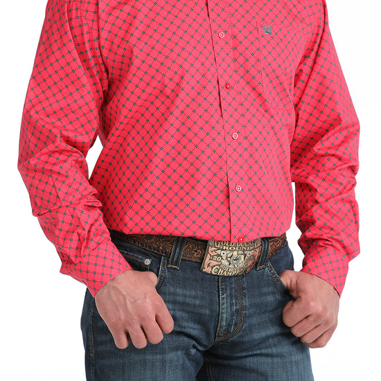 Cinch Men's Pink Geometric Print Long Sleeve Button Down Shirt