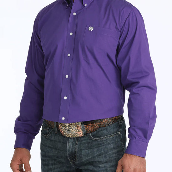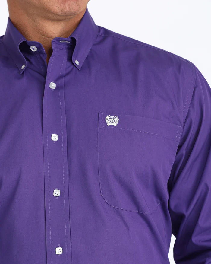 Cinch Men's Solid Classic Fit Purple Button Down Shirt