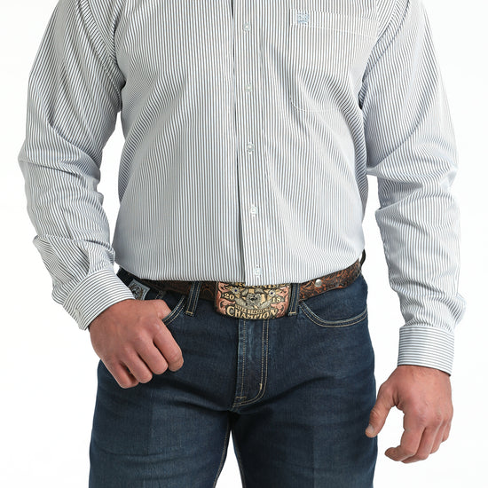 Cinch Men's White Stripe Long Sleeve Button Down Shirt