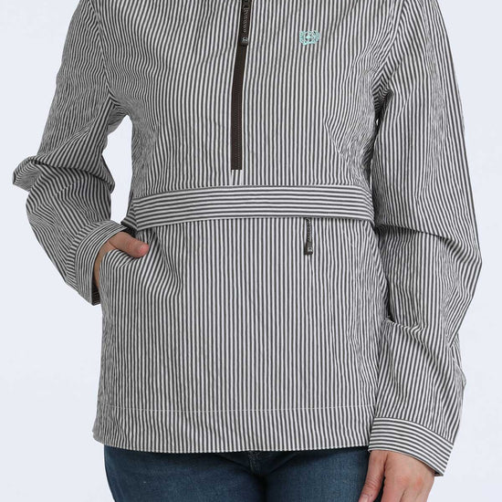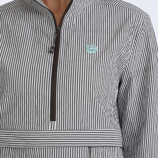 Cinch Women's 1/2 Zip Brown Stripe Pullover