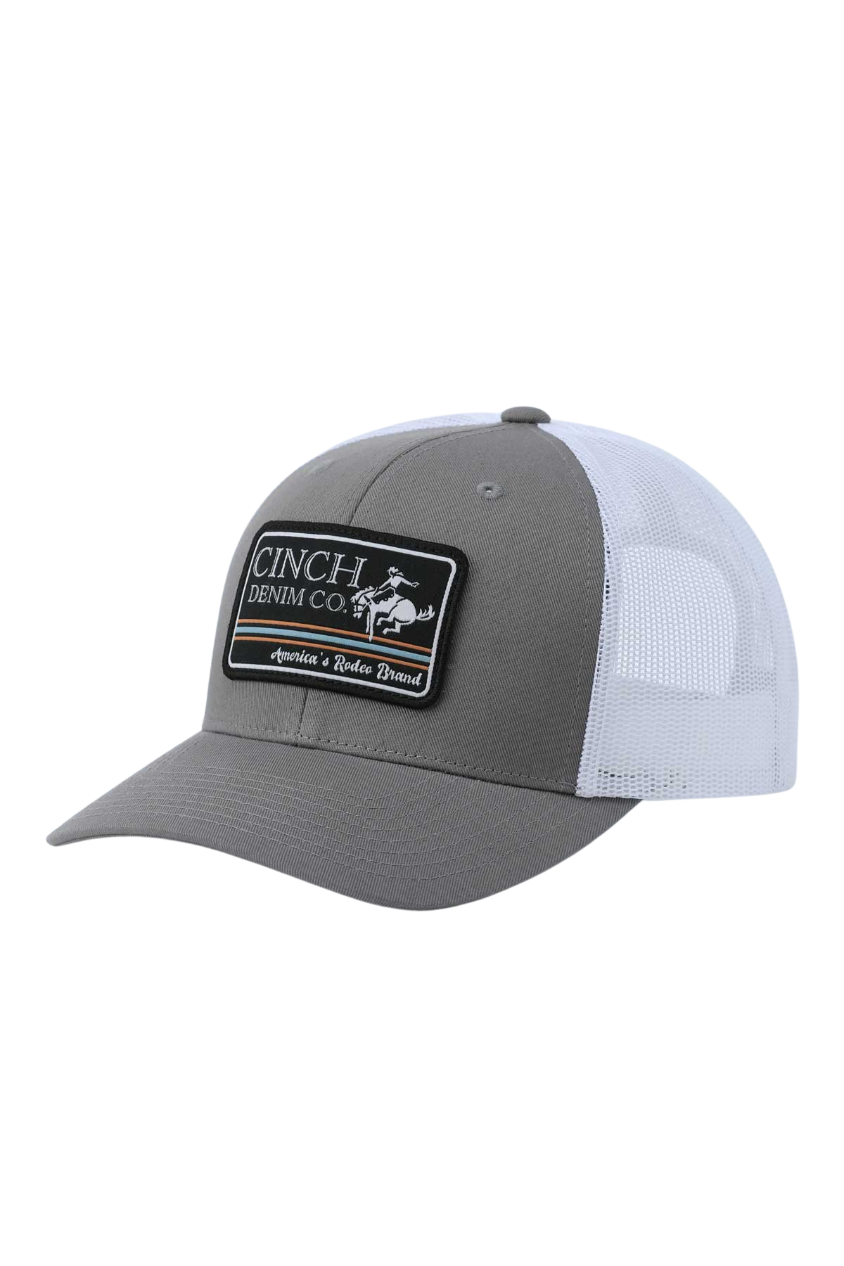 Elevate your casual style with the Cinch Women's America's Rodeo Brand Trucker Cap. Featuring a sleek grey crown paired with breathable white mesh, this snapback combines comfort and ventilation for all-day wear. The iconic Cinch Denim Co. America's Rodeo Brand patch adds authentic western flair, making it the perfect accessory to showcase your rodeo spirit while keeping the sun at bay.