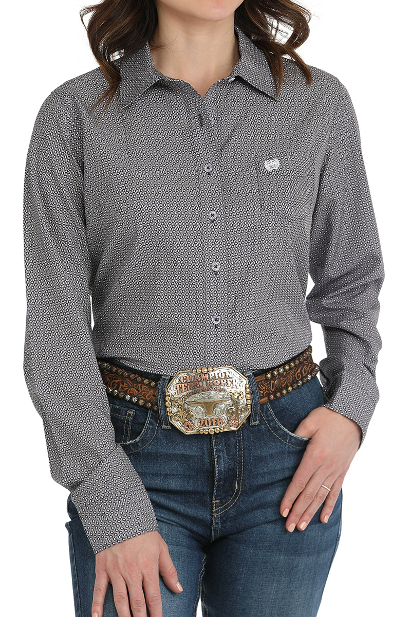Cinch Women's ArenaFlex Purple Geometric Print Button-Down Shirt