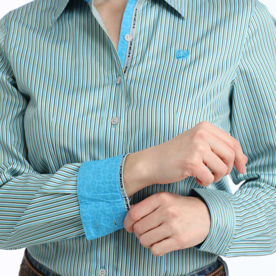 Cinch Women's Blue Stripe Long Sleeve Tencel Shirt