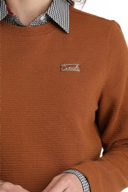 Find that fall feeling wearing our stylish copper textured sweatshirt that styles easily over a crisp button down and new blue jeans. This cozy sweatshirt features comfortable cotton/poly/spandex construction and a woven CINCH logo label.