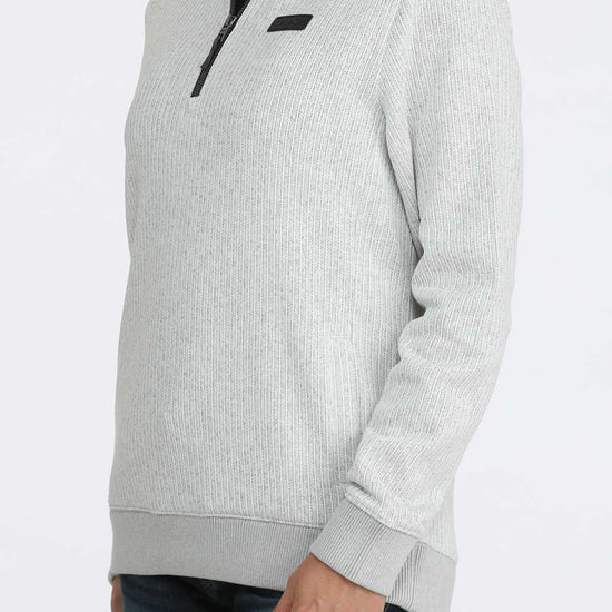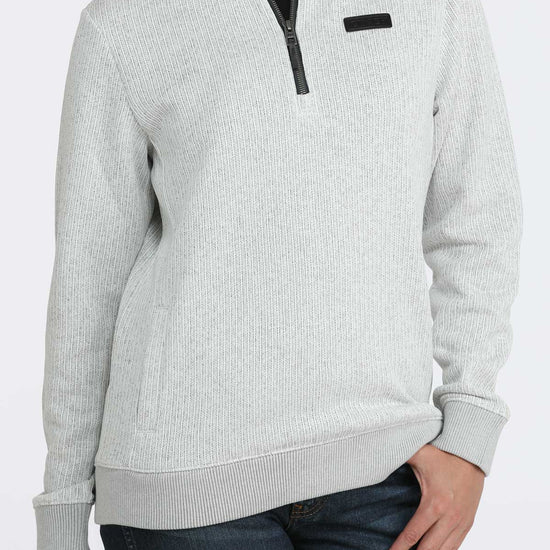 Elevate your casual wardrobe with this sleek grey pullover that's ready for anything. The 1/4 zip design gives you easy layering options, while premium polyester knit keeps things lightweight and comfortable. Rib knit trim adds a polished finish, and the eye-catching Metaluxe zipper brings just the right amount of shine. Top it off with the leather logo patch for that signature Cinch touch. Perfect for weekend hangouts or throwing over your favorite tee.