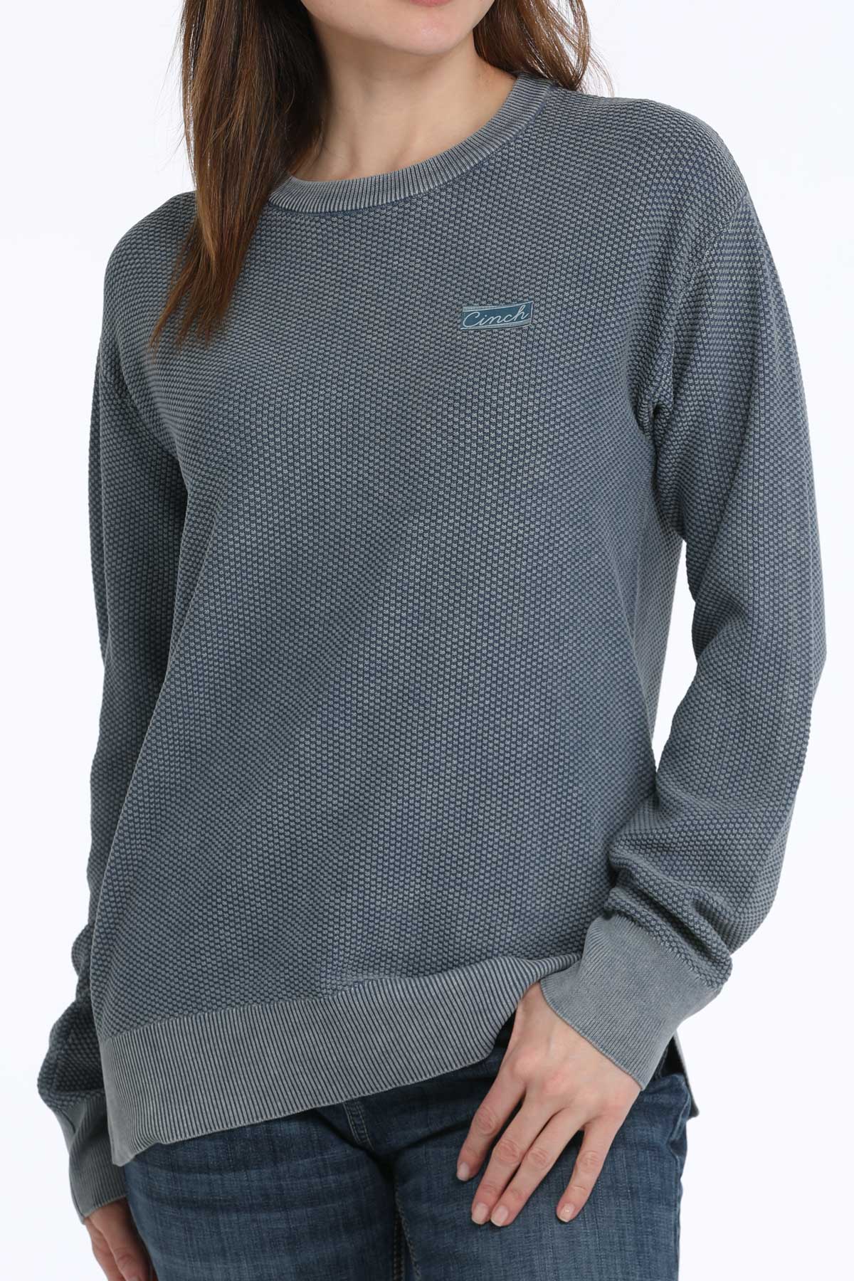Extend the weekend fun by wearing a comfortable light blue pullover like this one crafted by CINCH. Engineered cotton jacquard construction features a stylish acid wash treatment and a woven logo label.