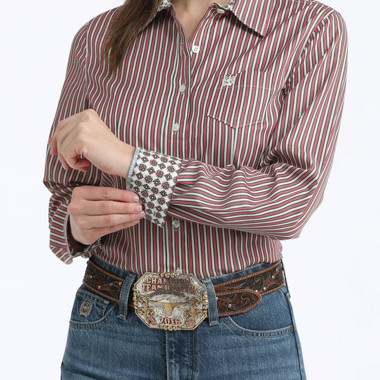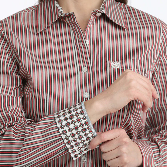 Cinch Women's Tencel Red/Black/White Striped Arena Fit Button-Down Western Shirt