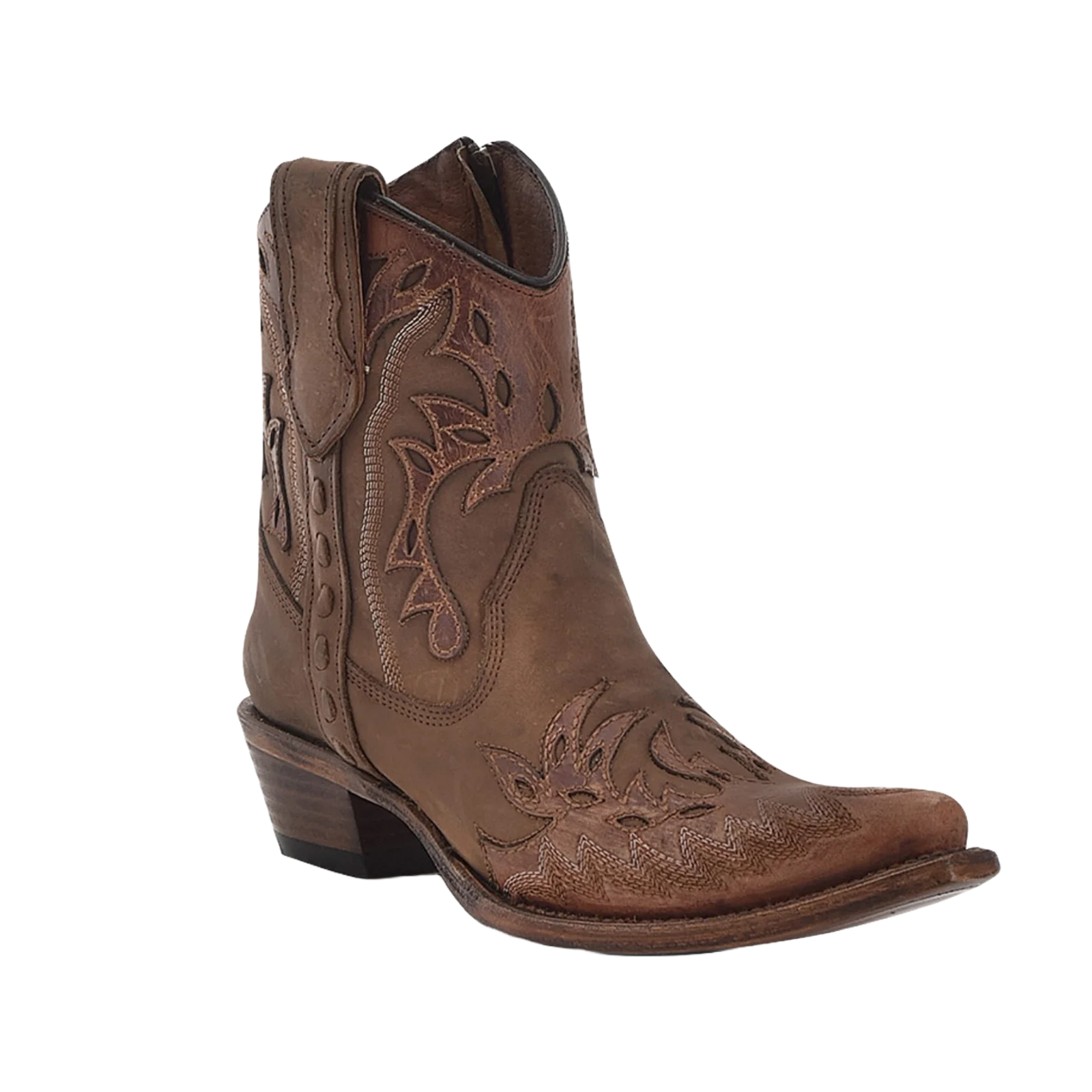Circle G Cognac-Tobacco Embroidery Wingtip Ankle Boots