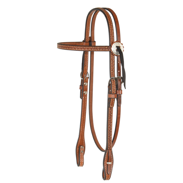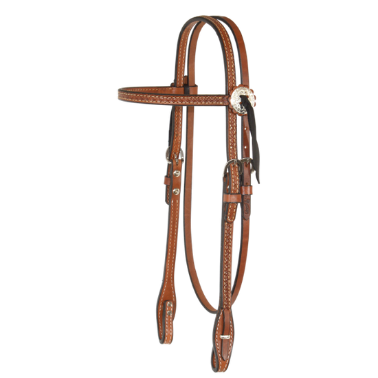 This classic 5/8" browband headstall is designed to match Julie Goodnight's saddles, with diamond tooling and engraved silver conchos. Short saddle strings on the conchos give this a ranchy look that fits in perfectly on the trail and in the arena.