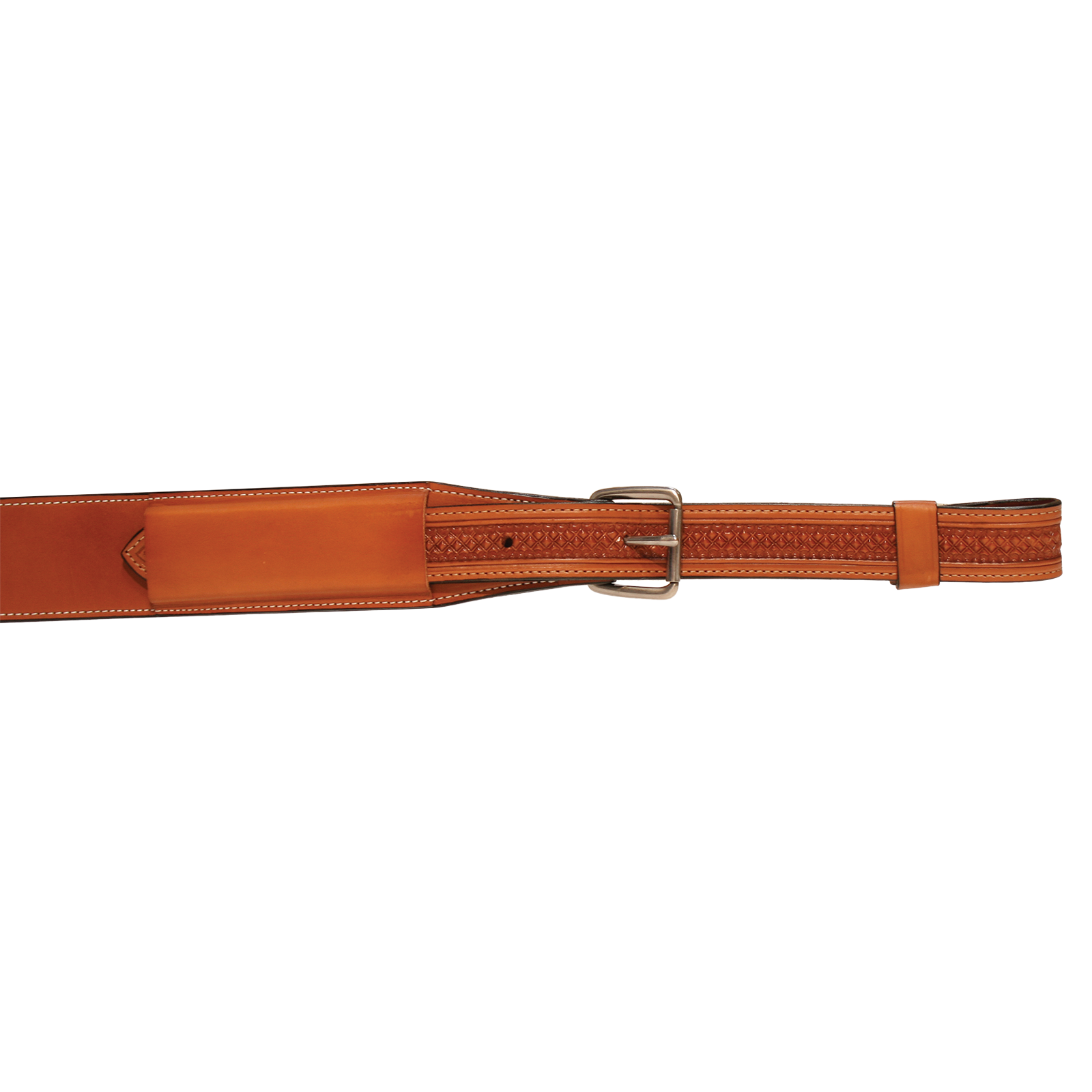 A rule of thumb is to be able to slip two fingers between the flank and the horse at the apex of the belly. It should not be loose or hang below the horse’s belly – a loose flank cinch is a danger to horse and rider.