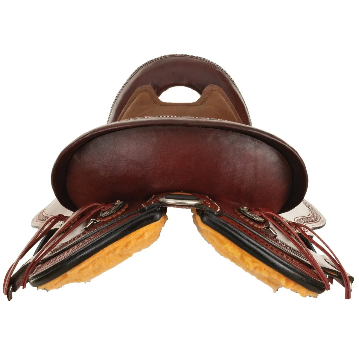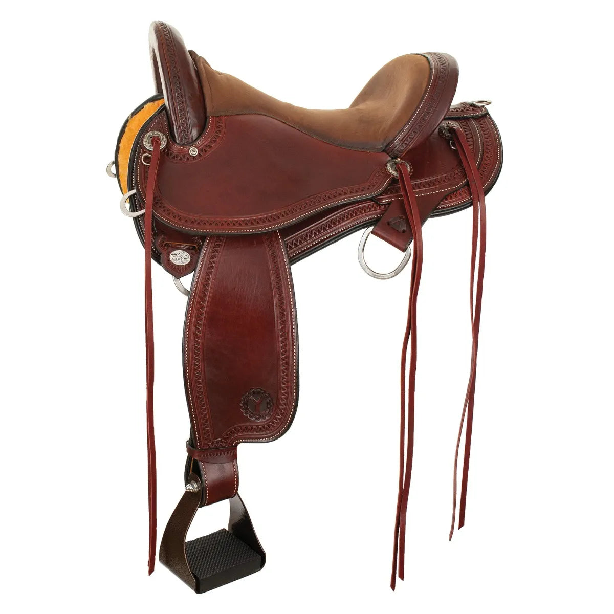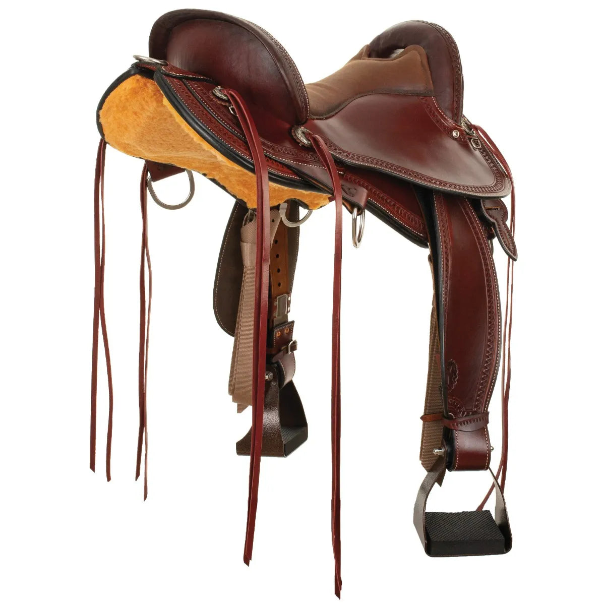 The Grey Forest Flex2® Trail Saddle is made for endurance riding with a padded seat, 4" cantle, pre-turned fenders, and EBS trail glide stirrups for all-day comfort. The short skirt and no horn make this saddle a true endurance front runner and it only weighs in at 22 lbs. With its comfortable design and versatile style, the Flex2® is perfect for any rider who wants to ride the trails in comfort and style.
