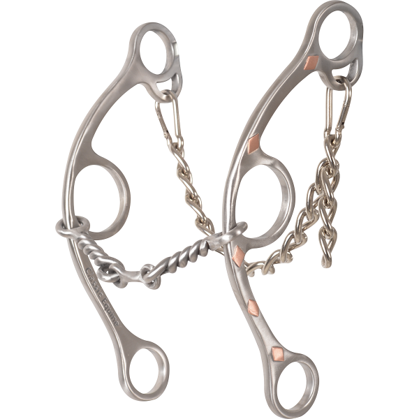 Sherry Cervi’s Signature Collection bits have and excellent feel for quick pickup and release. This 7.5-inch-shank, twisted-wire dogbone bit offers more leverage to maintain rate and body position in turns with speed.