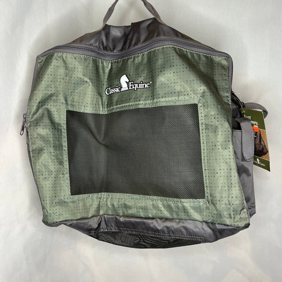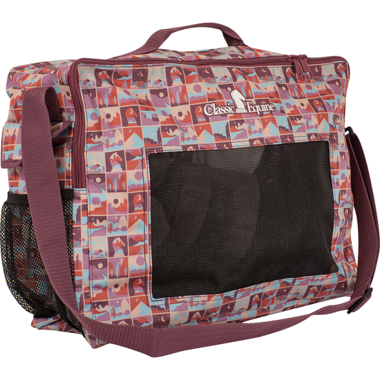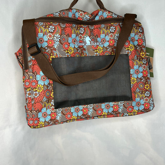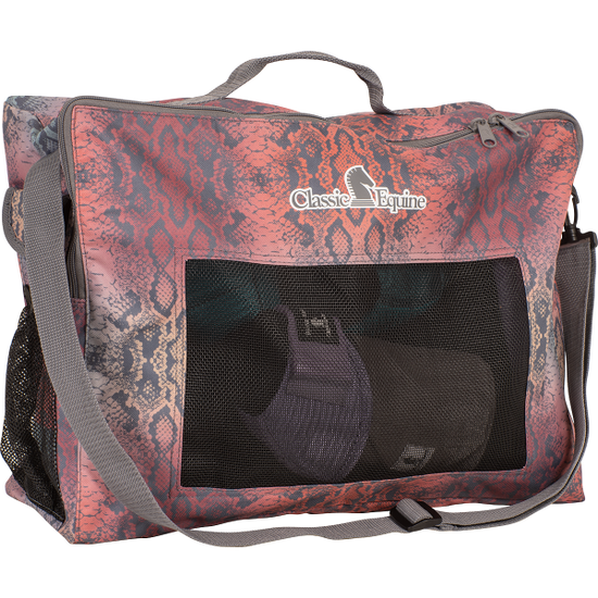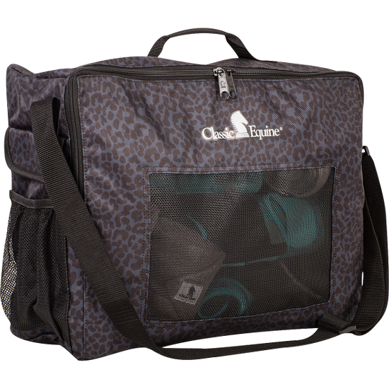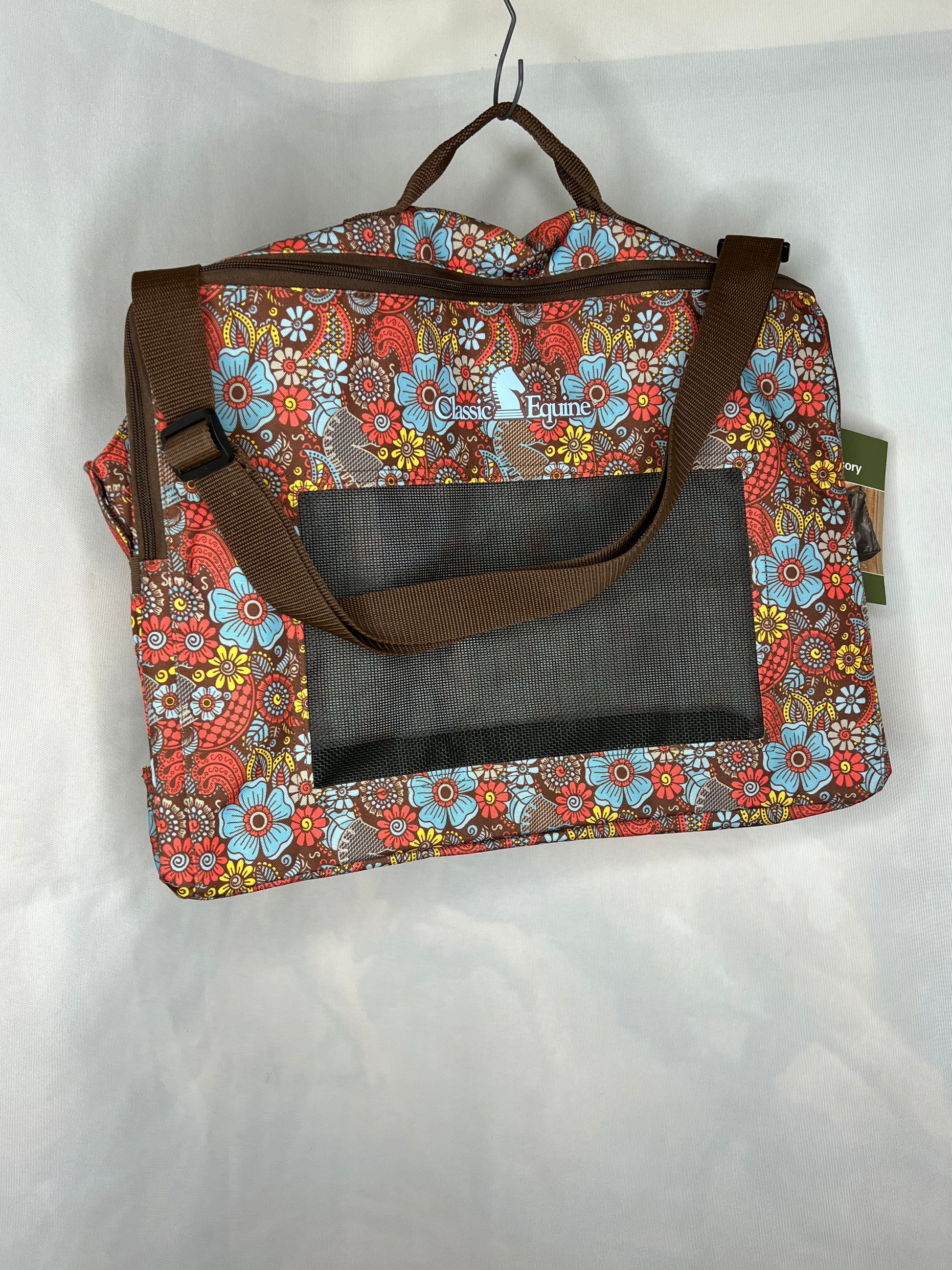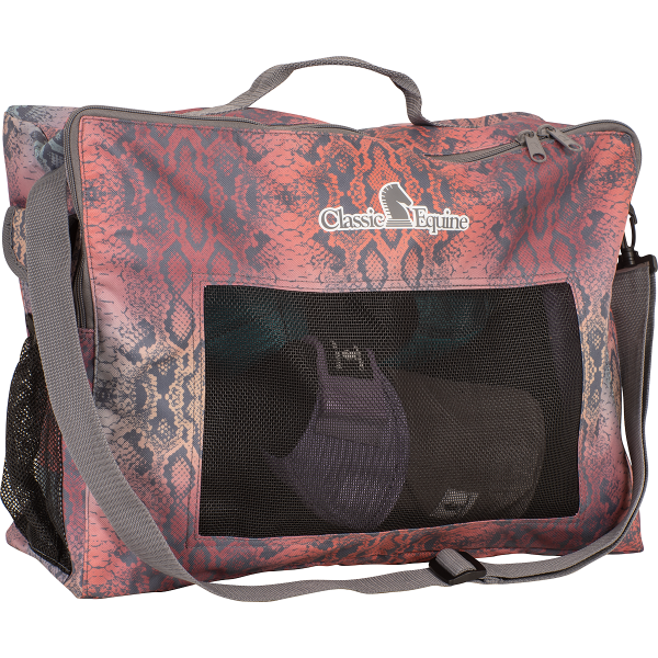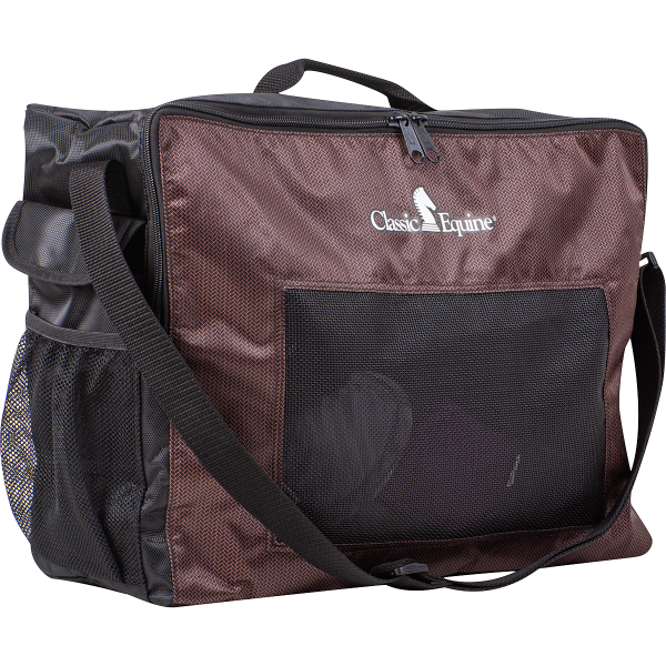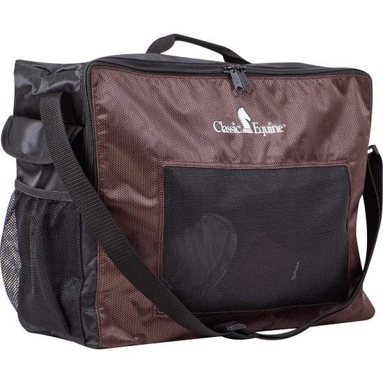 The Boot/Accessory Tote has a tough nylon shell with PVC mesh on sides and bottom to allow dirt to escape. Pockets of various sizes secure cell phones, water bottles, and other necessities. Nylon webbing handle and shoulder strap. Double zipper closure.