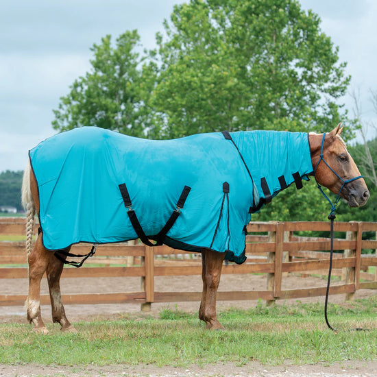 The Coolcore® equine cooling blanket offers the ultimate in comfort and performance for your horse after exercise, hauling, or on hot summer days. Made with patented Coolcore® fabric, this award-winning, chemical-free material provides a powerful combination of wicking, moisture transportation, and regulated evaporation to naturally cool the body. When wet, the fabric delivers a refreshing cooling effect; when dry, it quickly pulls sweat away to speed drying and prevent chills. UPF 30+ sun protection helps guard against harmful rays, while removable belly and leg straps allow easy washing. Completely machine washable, this blanket provides reliable cooling that never washes out or deteriorates over time.