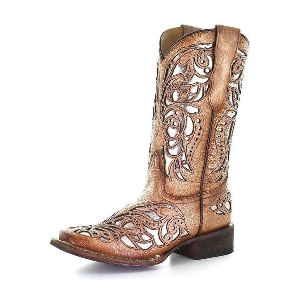 Corral Girl's Shiny Inlay Square Toe Western Boots