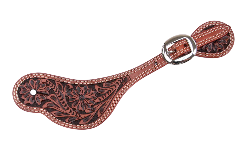 Cowboy Chrome Men's Floral Contrast Hand Tooled Spur Straps
